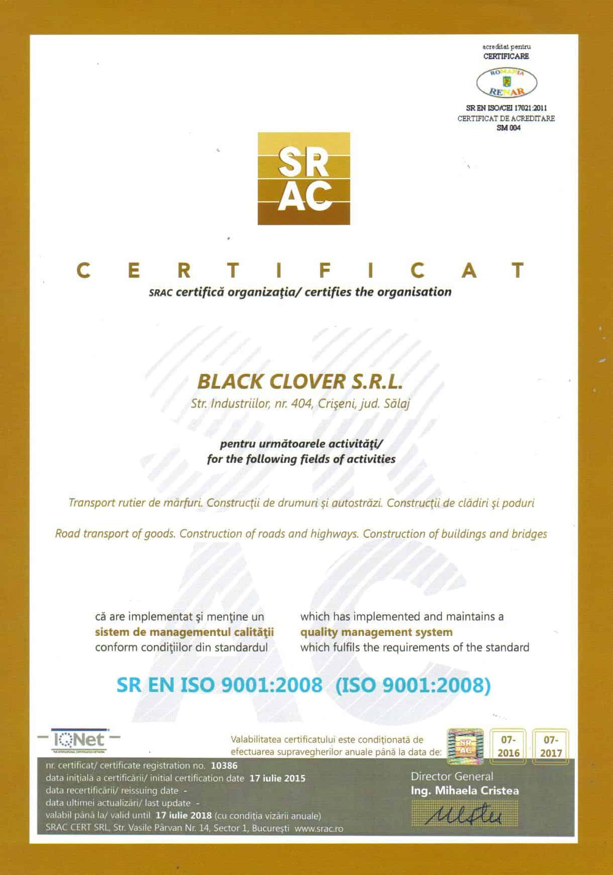 Certificari obtinute de firma noastra